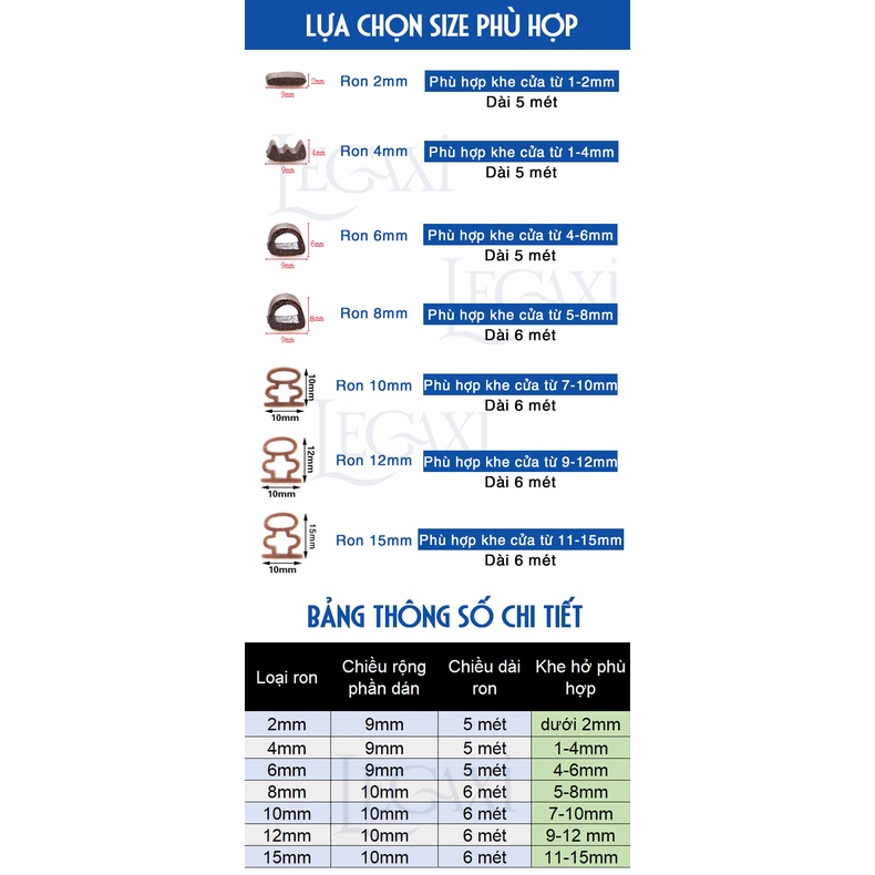 Thương hiệu: Legaxi | Xem thêm các sản phẩm Ron, miếng dán khe cửa, chân cửa của LegaxiMô tả ngắn