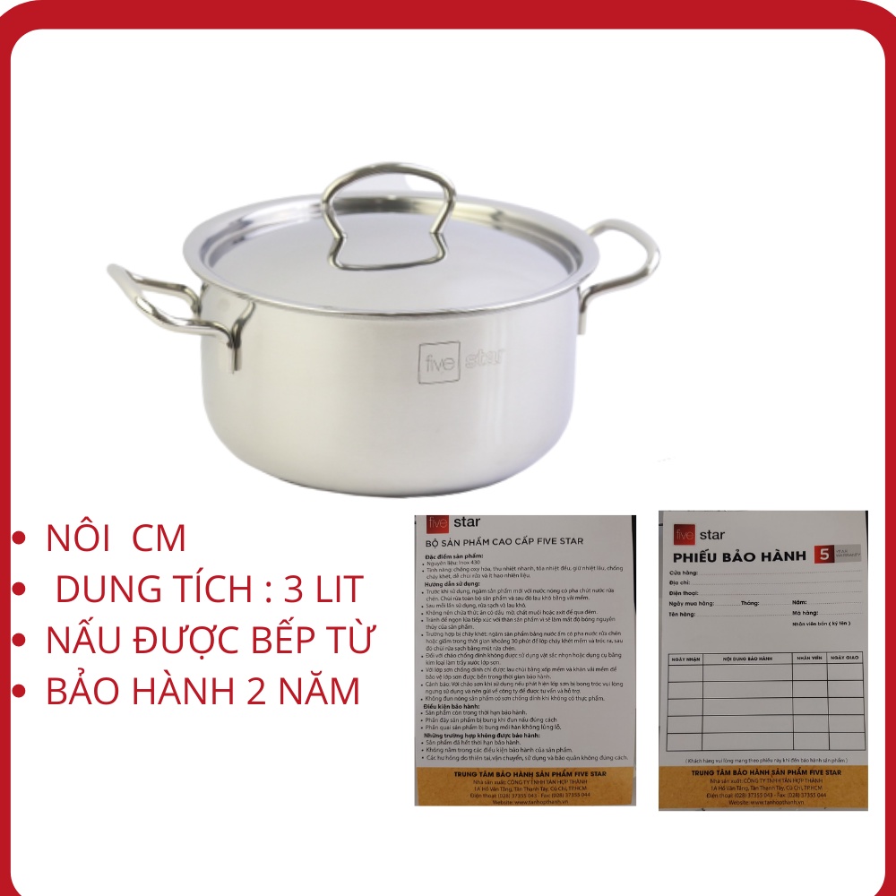 Nồi 3 Đáy Sandwich Inox 430 Fivestar 20cm Dùng Cho Bếp Từ FSN20Thương hiệu: Fivestar - Tân Hợp Thành