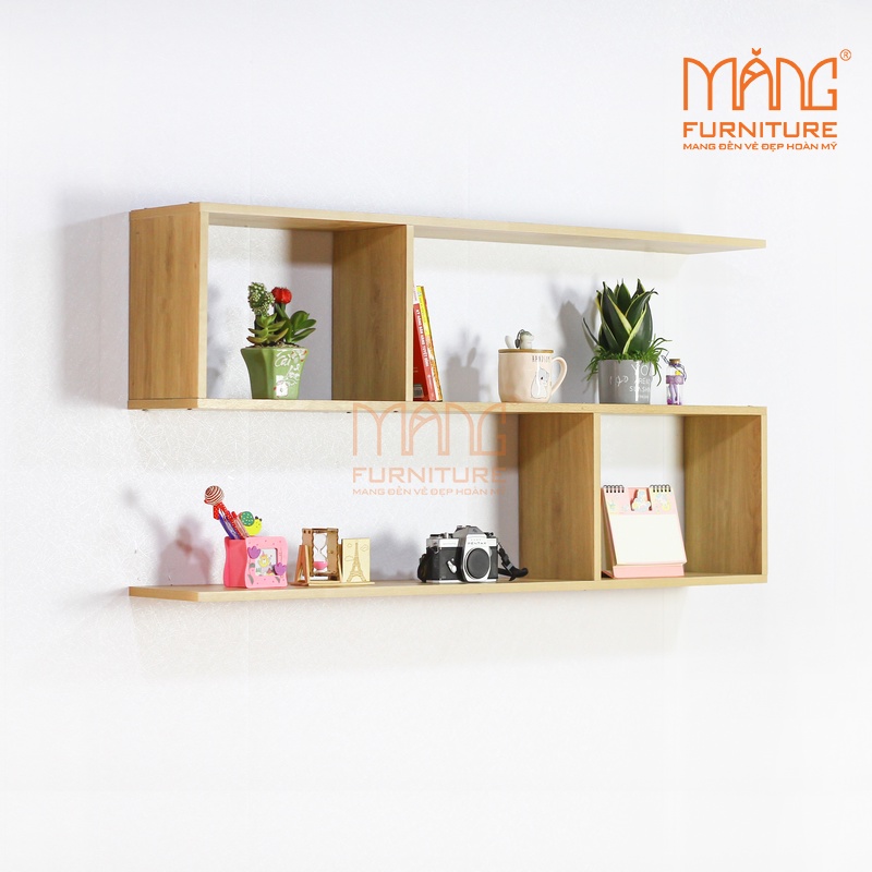 kệ sách gỗ treo tường, giá sách cỡ lớn chữ S 2 tầng KS11