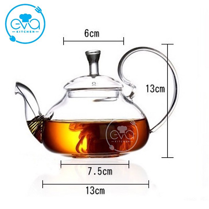 Ấm Pha Trà Thuỷ Tinh Chịu Nhiệt Quai Cong Kèm Lõi Lọc Lò Xo 550 Ml