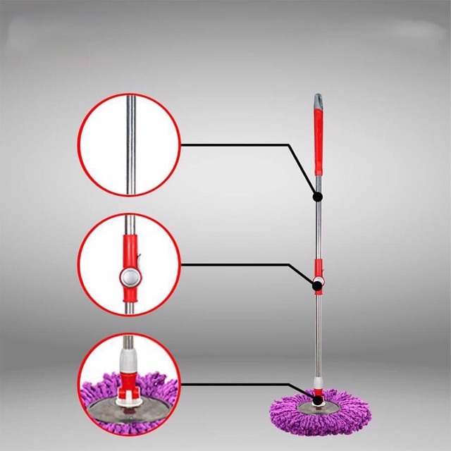 + Phần đầu có khả năng xoay 360 độ, dễ dàng lau chùi nhiều vị trí khác nhau.