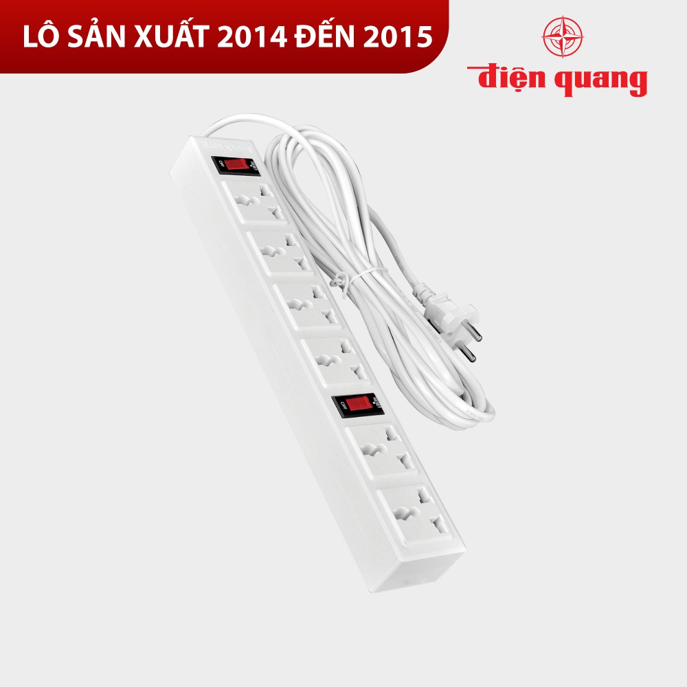 Ổ cắm Điện Quang ĐQ 003A-04 ( 6 lỗ 3 chấu) - Năm SX 2014, 2015 - Bảo hành 12 tháng