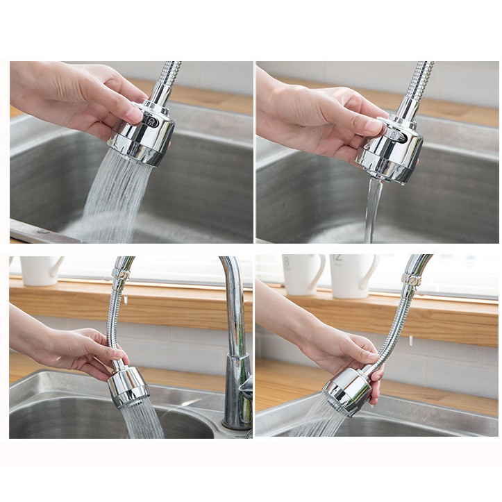- Điều chỉnh 360 dễ dàng với hai chế độ nước giúp thuận tiện khi sử dụng đầu chuyển tiếp phù hợp với phần lớn vòi nước tiêu chuẩn của các nhà sản xuất.