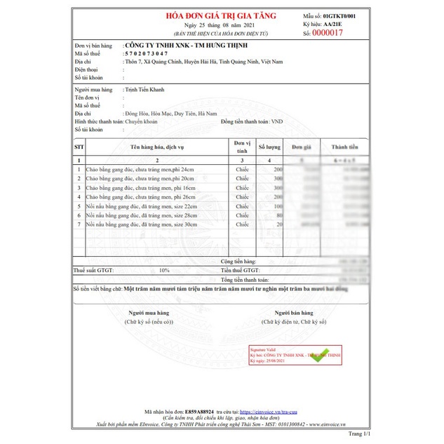 Tên công ty nhập khẩu : Công ty TNHH XNK - TM Hưng Thịnh