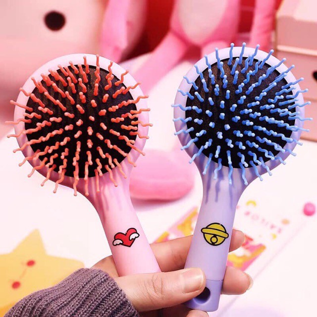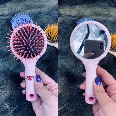 Gương kèm lược cầm tay mini- 1 mặt lược cấu trúc bàn chải S-curled cao cấp chống rụng tóc, gỡ rối siêu đỉnh.