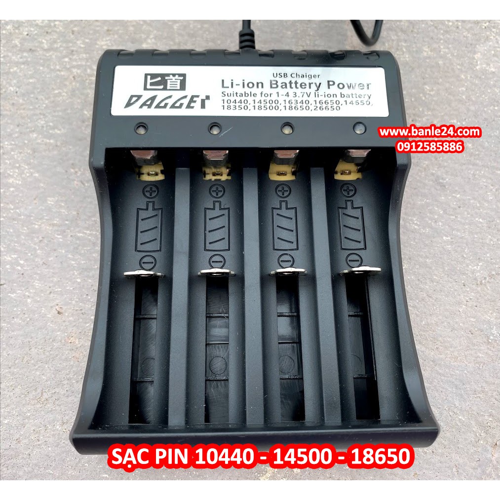- Sạc được các loại pin 3,7v 18650, 18500, 18350, 16650, 16340, 14500, 10440