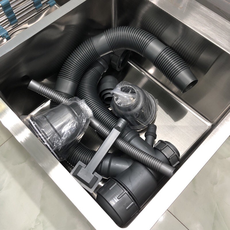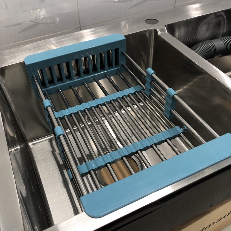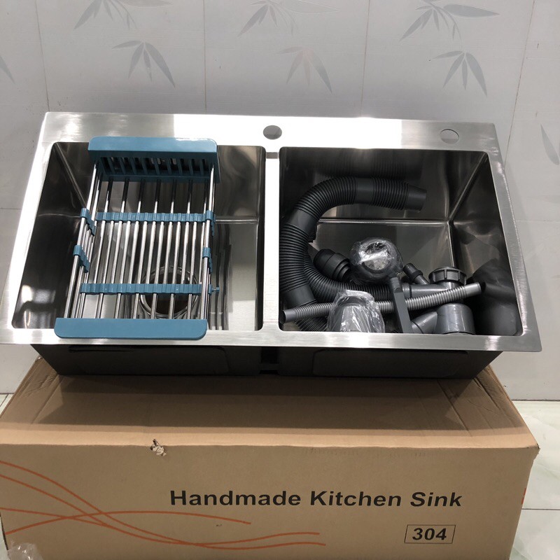 Chậu Rửa Chén inox 8245 cao cấp- Bộ sản phẩm gồm: chậu và xả chậu và giá để đồ như hình
