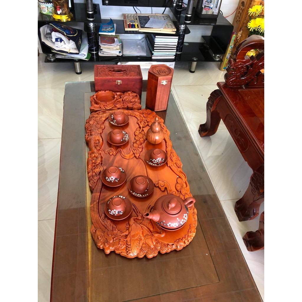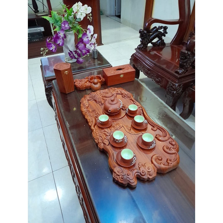 Khay Trà Gỗ được chế tác thủ công nguyên khối, không chắp ghép ....là điểm nhấn mạng lại sự sang trọng, lịch sự, quý phái cho bàn trà, phòng khách của gia chủ, gia đạo.