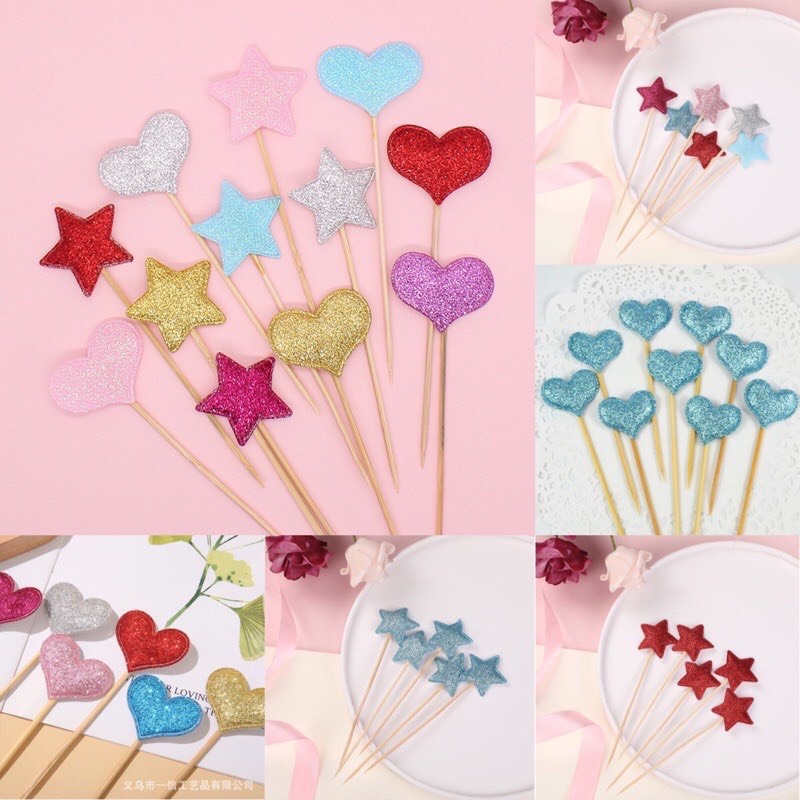 - Bộ sản phẩm đóng gói 06 que cắm trang trí hình Trái Tim+Ngôi Sao+Hình Gấu+Vương Miện