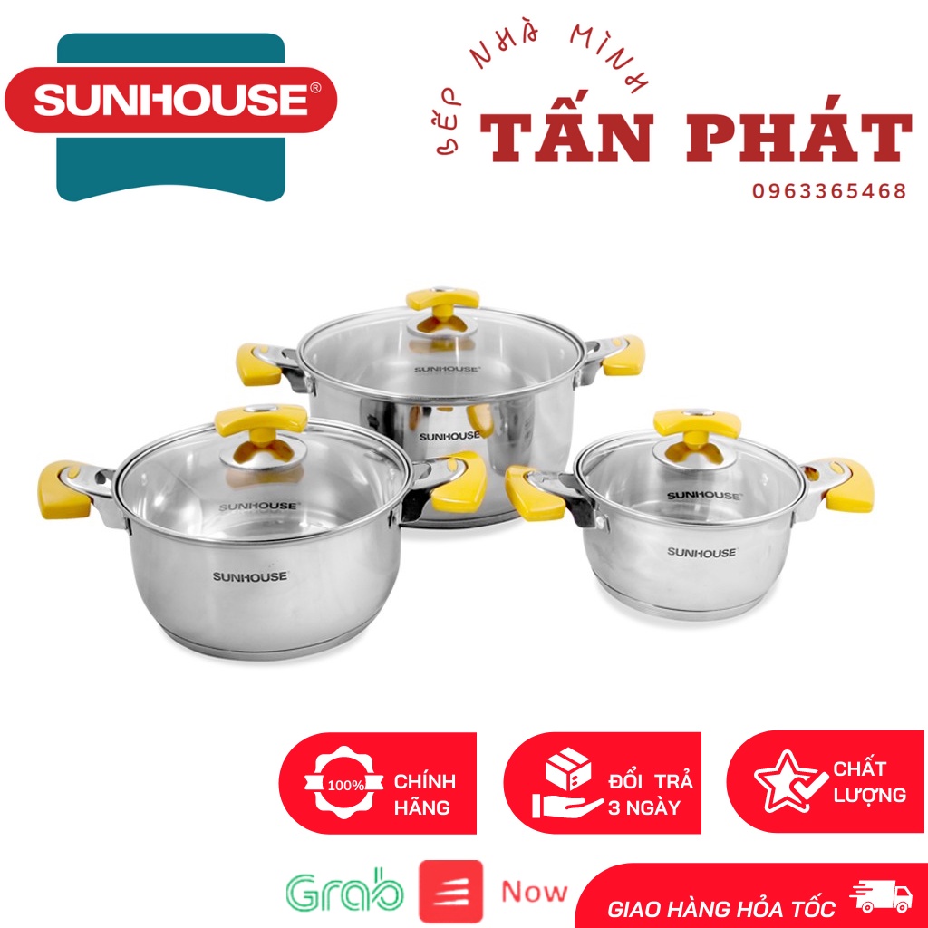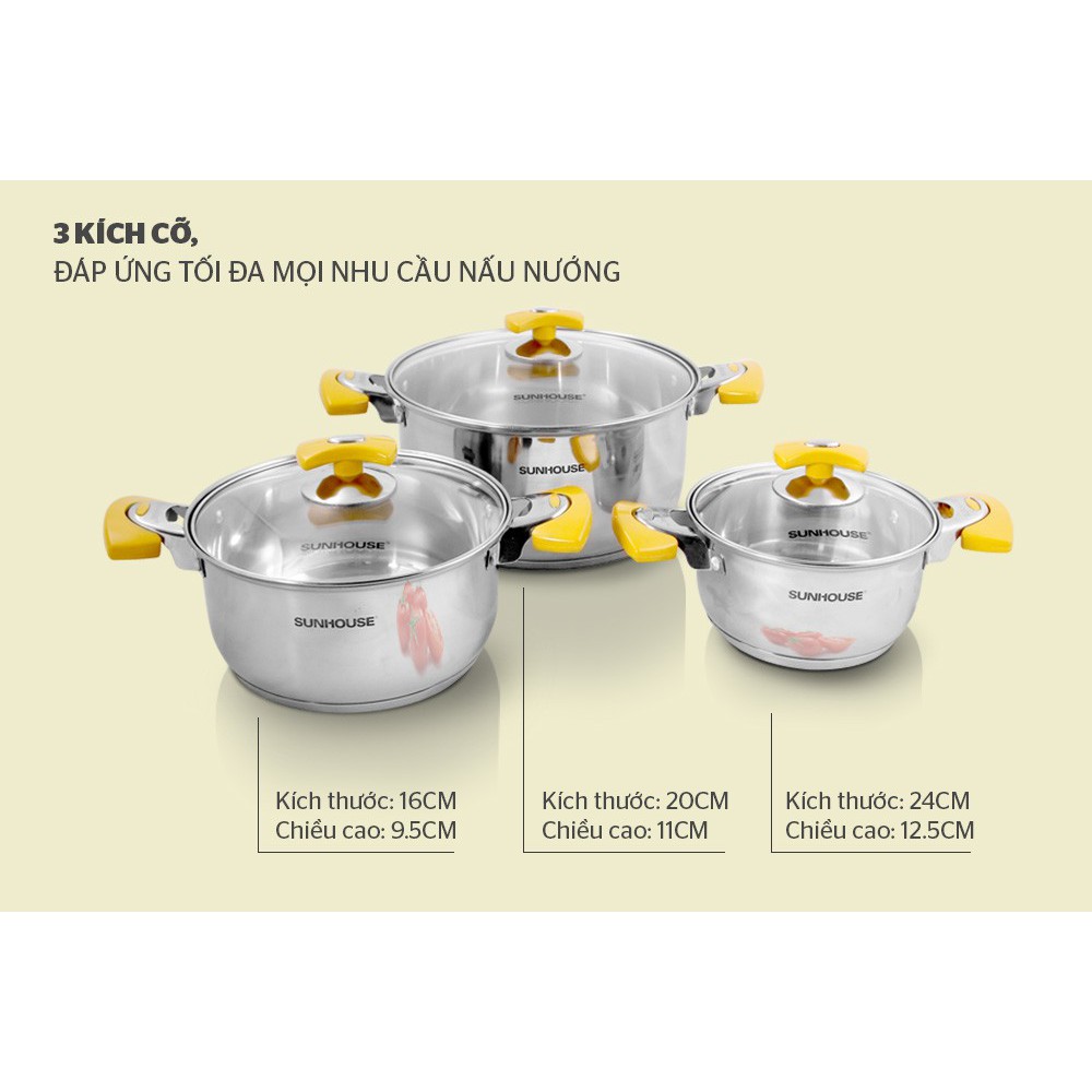 Nhà cửa & Đời sống > Dụng cụ nhà bếp > Nồi || BỘ 3 NỒI INOX 5 ĐÁY SUNHOUSE SH787 QUAI CÁCH NHIỆTCòn hàng