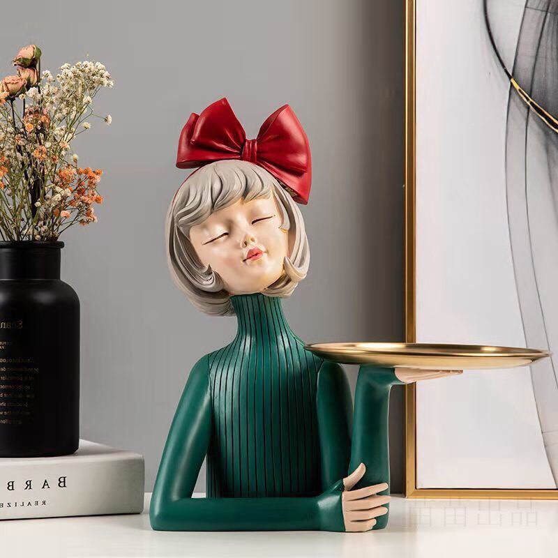 - Cô gái bê đĩa,gấu bê đĩa ngoài tác dụng trang trí phòng còn có thế đựng các vật dụng như đồ trang sức,trang điểm,để bánh kẹo,hoa quả
