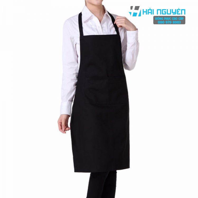 Tạp dề yếm trơn chưa in logo, thiết kế 3 dây đeo theo phong cách mới, có thể tăng giảm theo kích cỡ khác nhau.