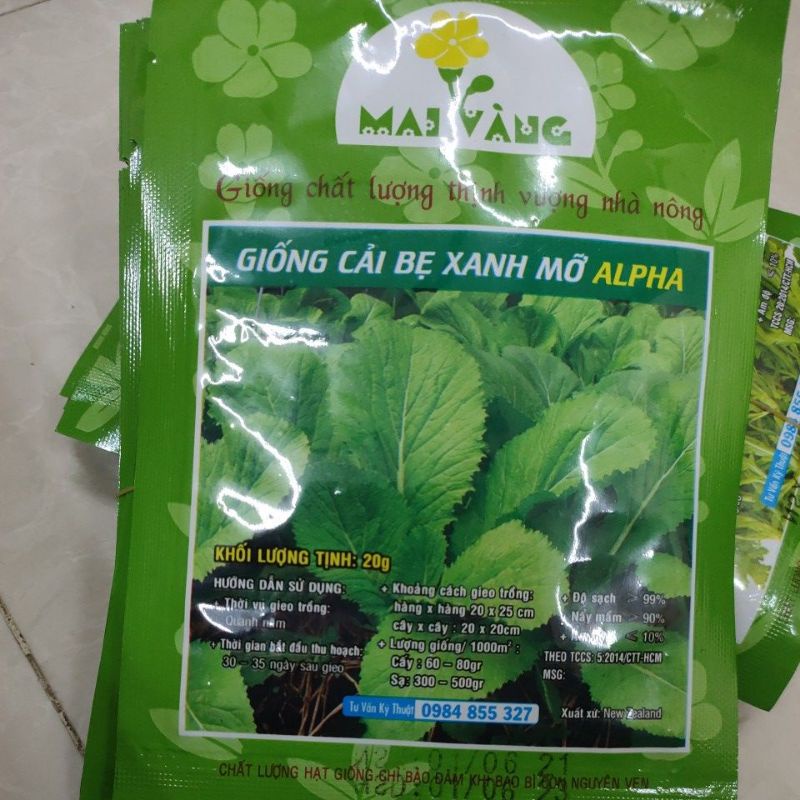 -----Hạt giống Cải bẹ xanh mỡ------Hạt giống rau Cải bẹ xanh mỡ, đóng gói 20gr