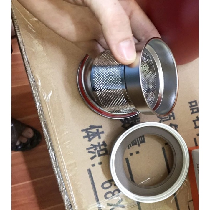 - Sản phẩm có lưới lọc, ngăn pha trà và dây treo cao su siêu bền