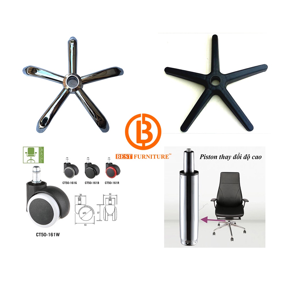 Giới thiệu Chân ghế xoay, Chân Thép, Chân nhựa, ben hơi, bánh xe ghế - Phụ kiện ghế xoay