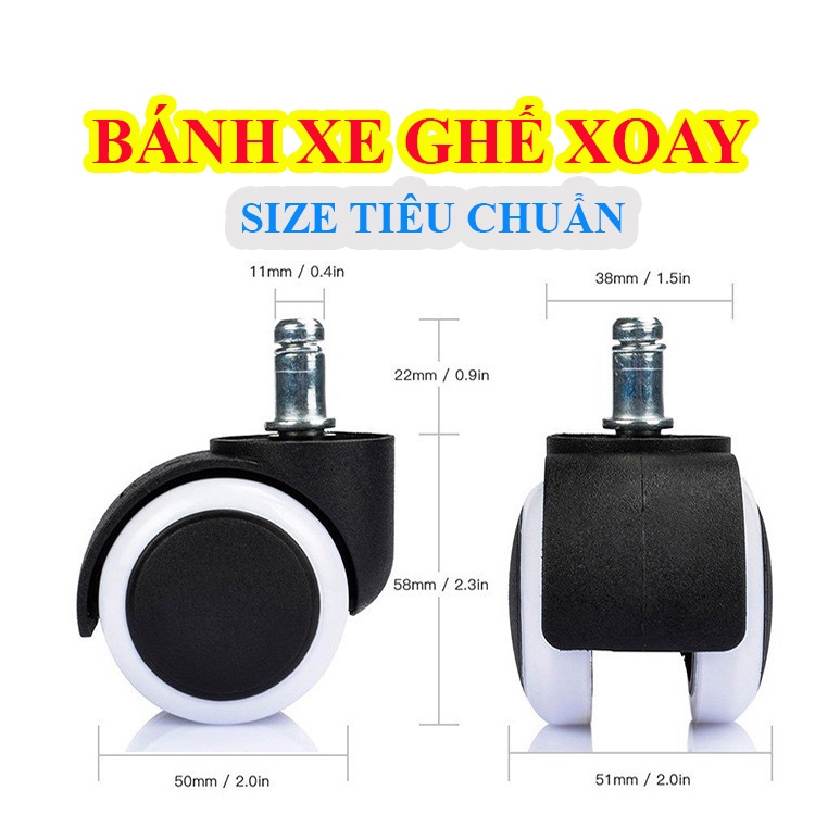+ Bộ 5 bánh xe xoay 2 màu: Đen-Trắng: BH 1 NĂM