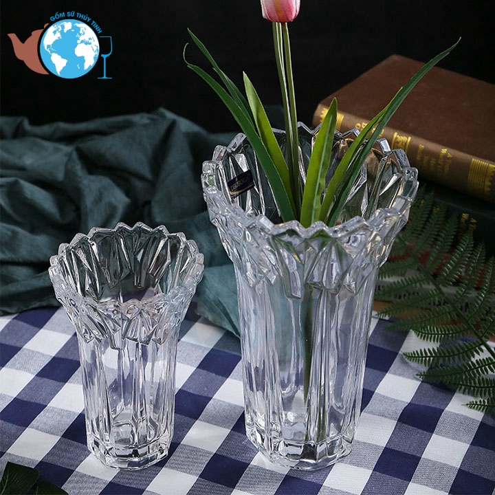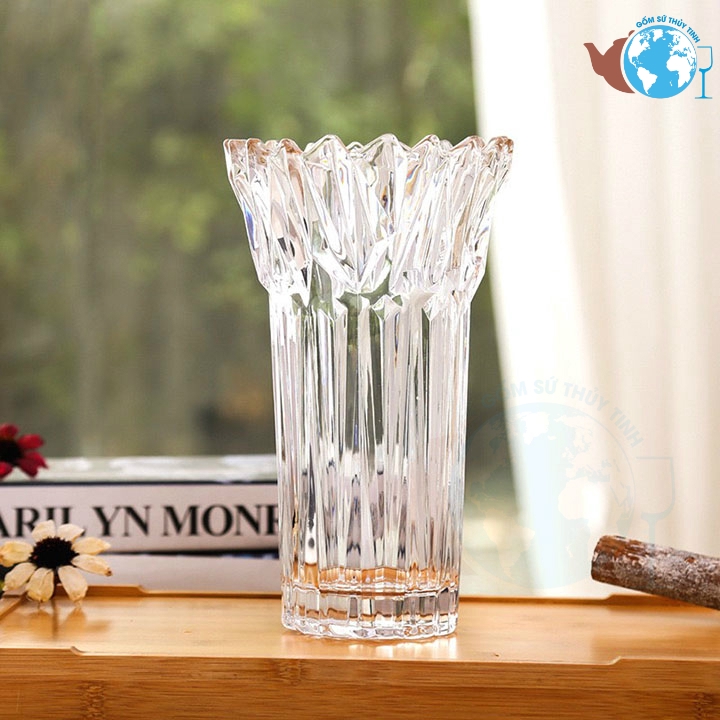 Bình bông lọ hoa thủy tinh pha lê có chiều cao 27 cm đường kính miệng 17 cm