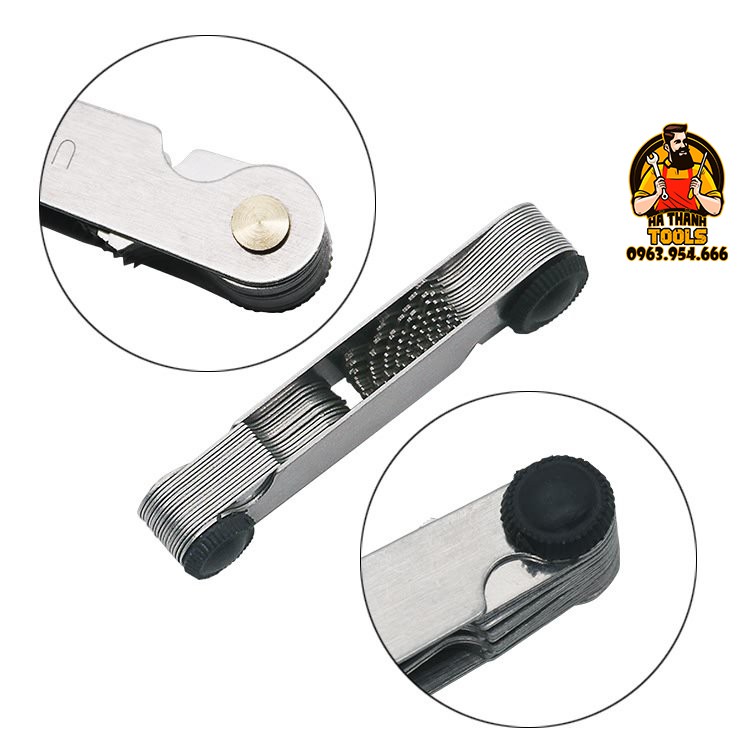 + Bộ dưỡng đo ren dùng để đo khoảng cách, kích thước giữa các bước ren trên mỗi bulong, đai ốc và phụ kiện thủy lực...
