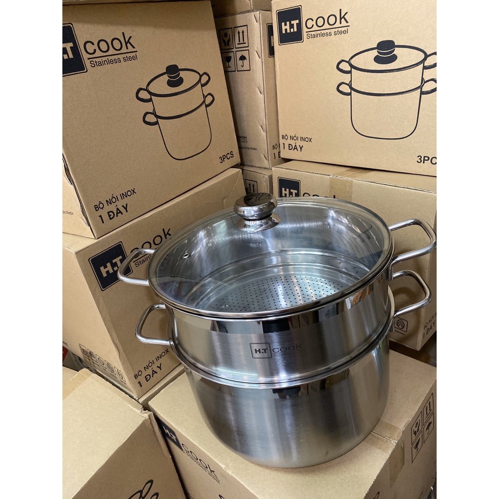 Nhà cửa & Đời sống > Dụng cụ nhà bếp > Nồi || Bộ nồi xửng hấp Inox 1 đáy nắp kính H.T Cook HTNX28001 28cm sử dụng bếp từCòn hàng