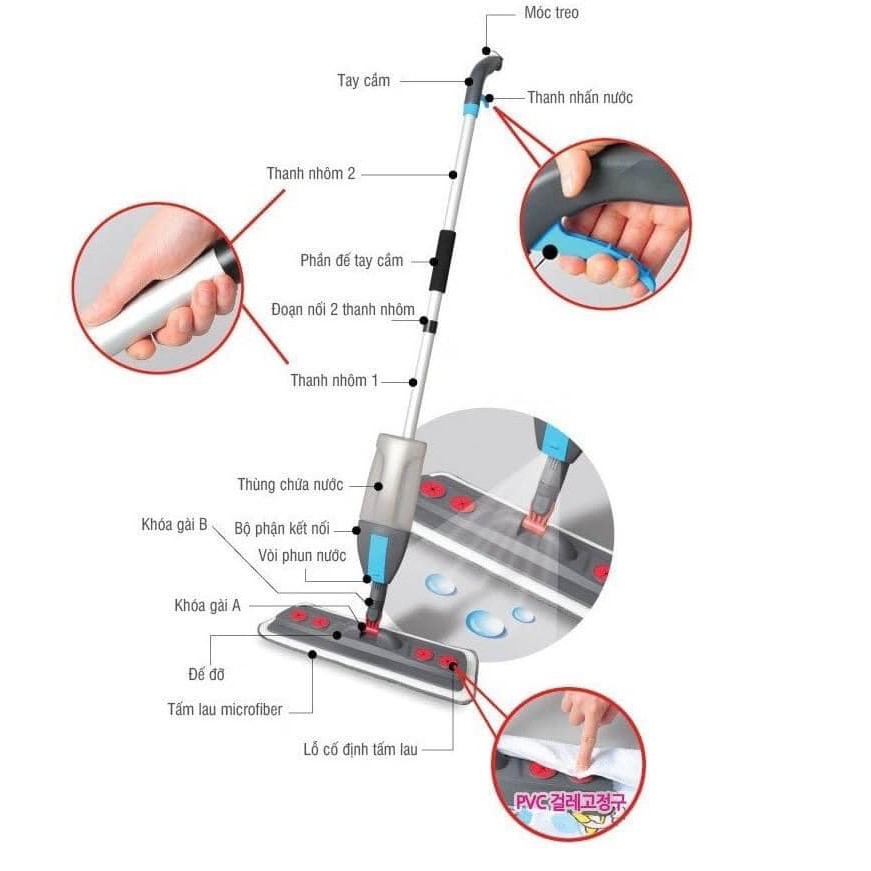 📷📷 Chuôi cầm được thiết kế cần gạt cho bạn thuận tiện thao tác khi cần phun nước, chỉ cần bóp nhẹ là nước sẽ được phun ra dưới một tốc độ cực mạnh dưới dạng sương với góc phun rộng, giúp bạn dễ dàng lau dọn và làm sạch cả những mặt sàn rộng một cách tiện lợi và nhanh chóng mà không làm xước bề mặt sàn, không để lại lông sợi trên sàn.