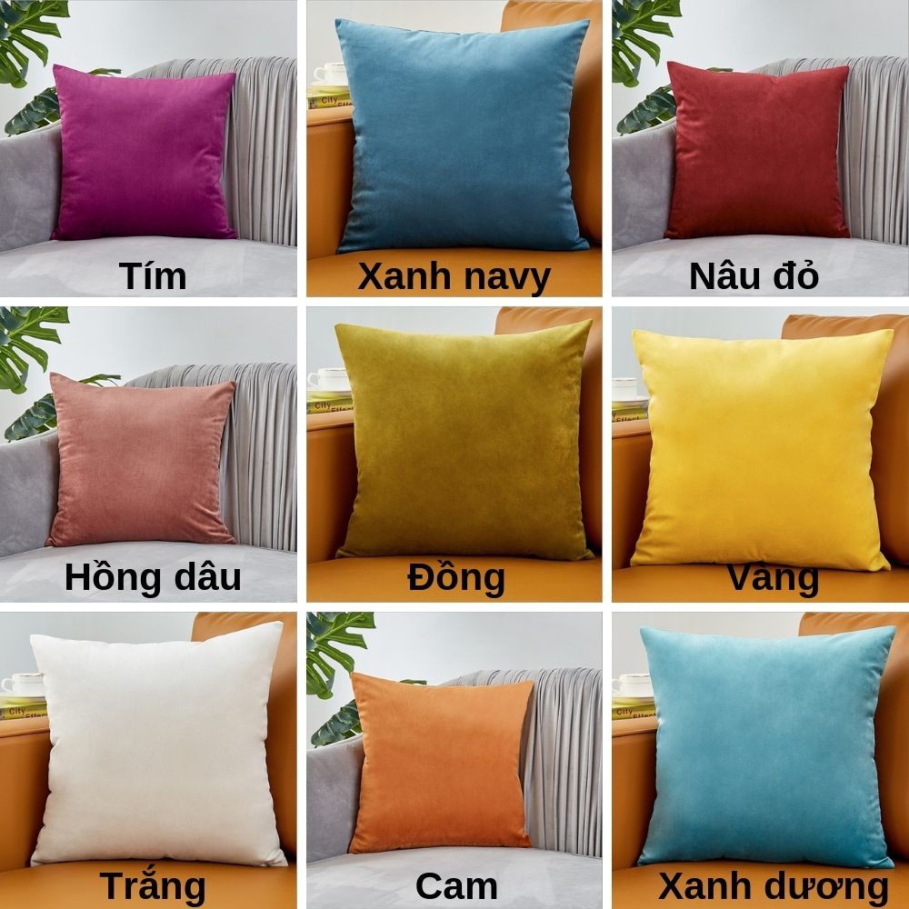 Gối tựa lưng sofa, vỏ gối sofa chất nhung, chất thô gai cao cấp, chọn mẫu vô tư
