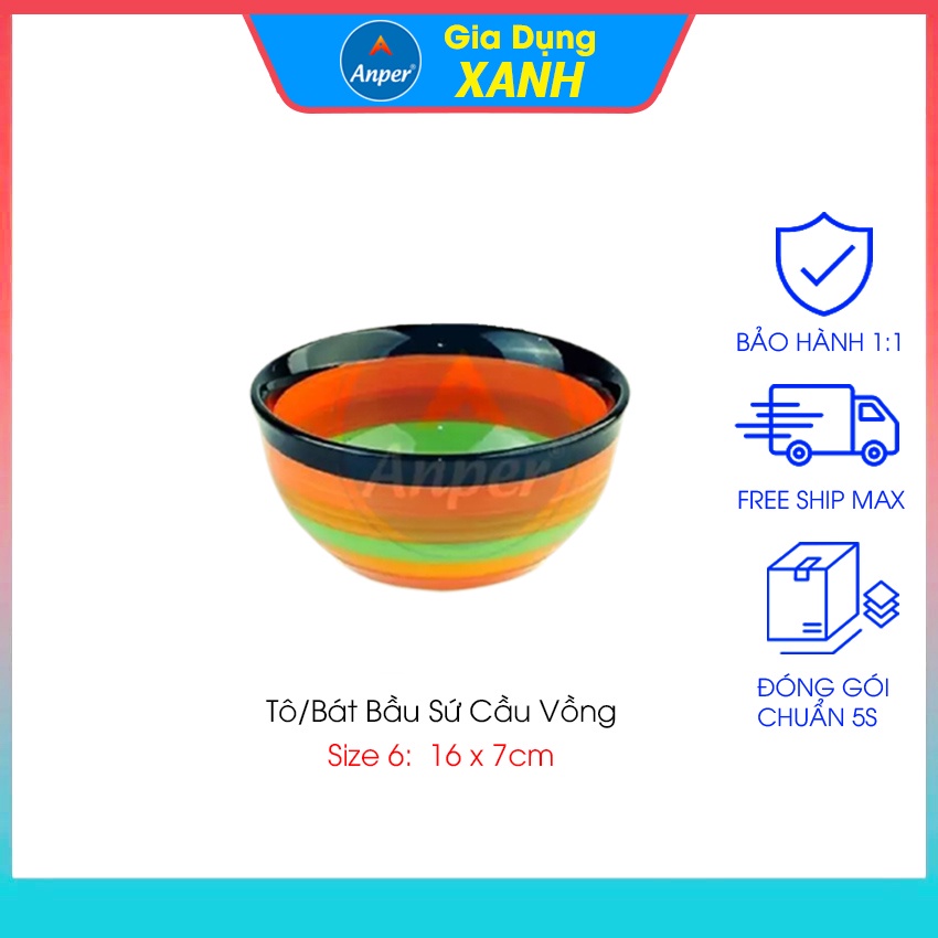 Bộ 2 tô sứ 3 bát sứ cầu vồng ANPER 16 18 cm an toàn sang trọng an toàn chính hãng
