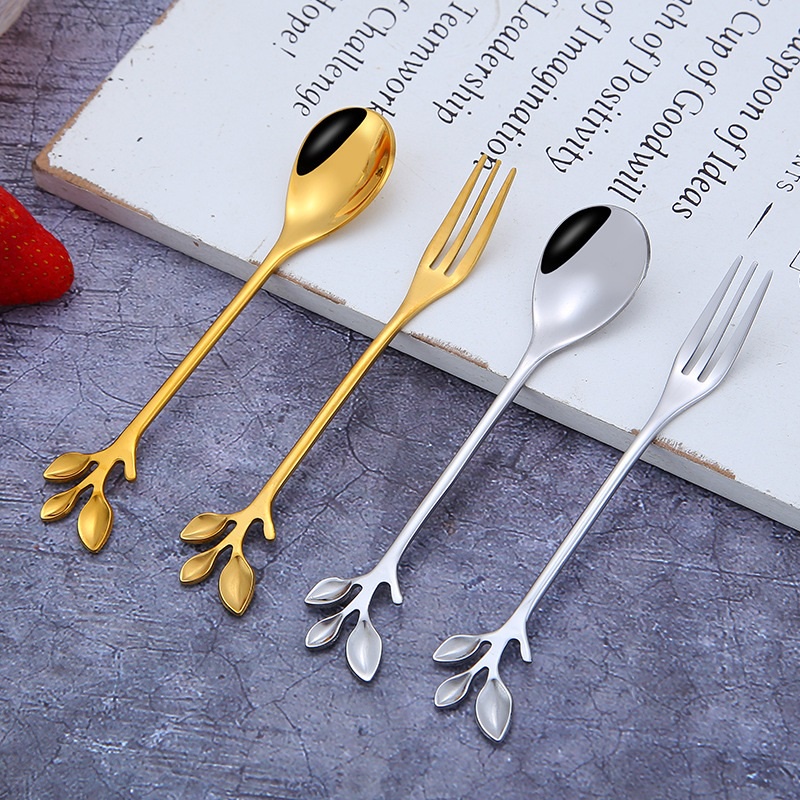 Muỗng Thìa Cà Phê, Dĩa Cafe Inox 304 Vàng Pha Trà, Tráng Miệng Phủ Bóng Sang Trọng