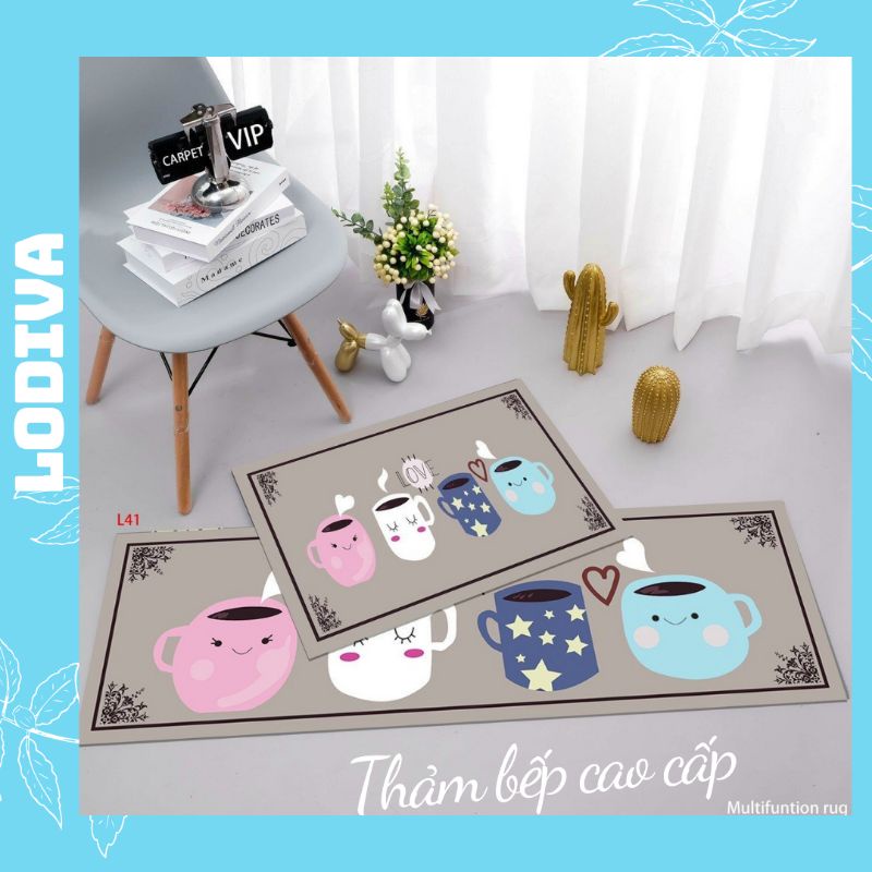 Thảm bếp dài cao cấp chống trượt 3d đẹp gồm 1 tấm dài + 1 tấm ngắn LODIVA TB01