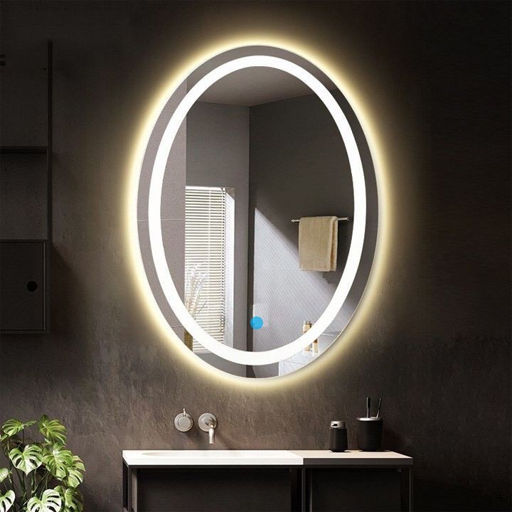 Gương hình elip bầu dục VUADECOR treo tường led cảm ứng cao cấp đủ phụ kiện
