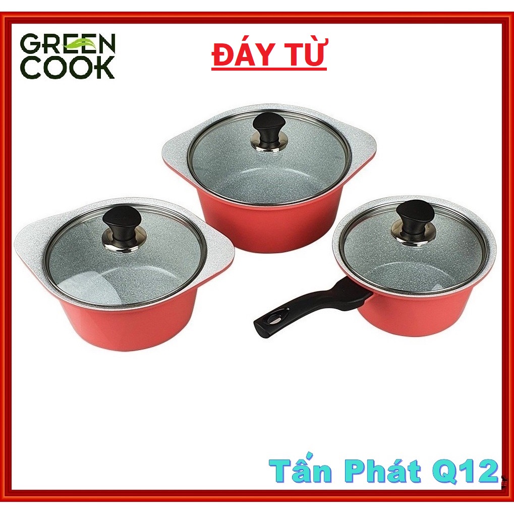 Nhà cửa & Đời sống > Dụng cụ nhà bếp > Nồi || BỘ NỒI ĐÚC VÂN ĐÁ ĐÁY TỪ GREEN COOK 18/20/24CM (màu hồng)Còn hàng