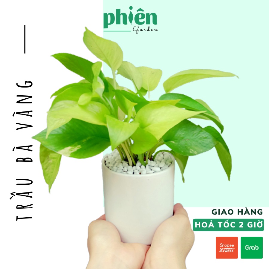 Giới thiệu [Mã LIFE20KALL giảm 10% đơn 50K] Cây Trầu Bà vàng, xanh để bàn kèm chậu gốm tráng men