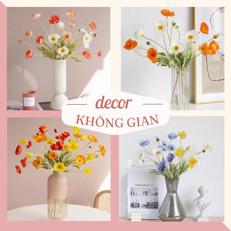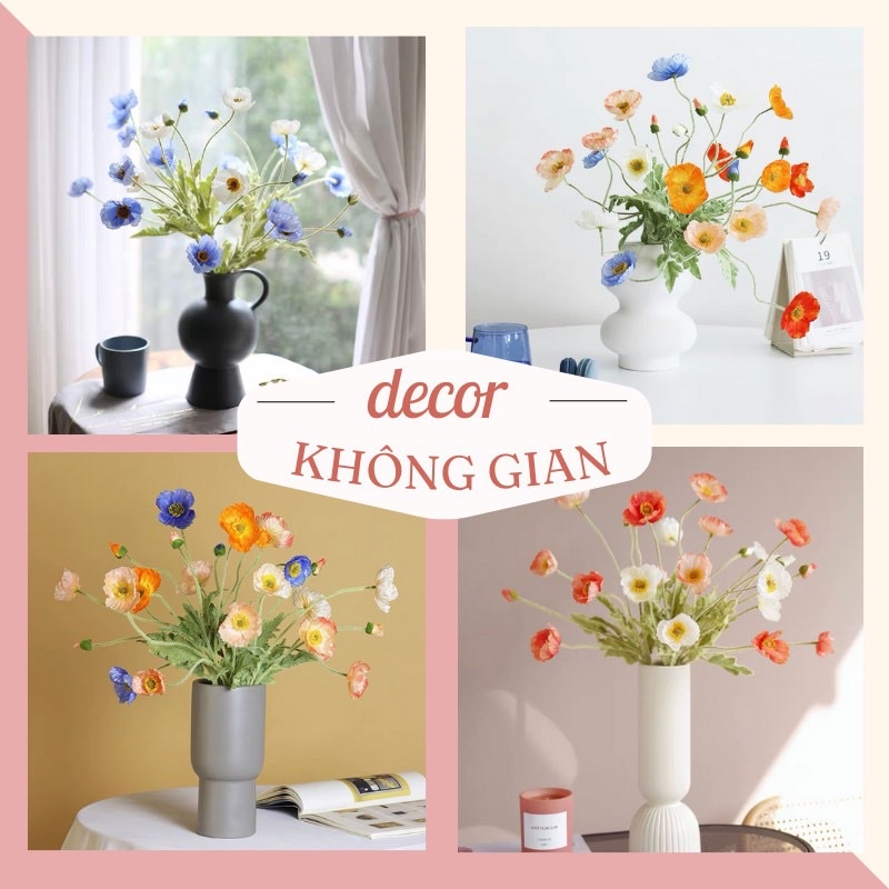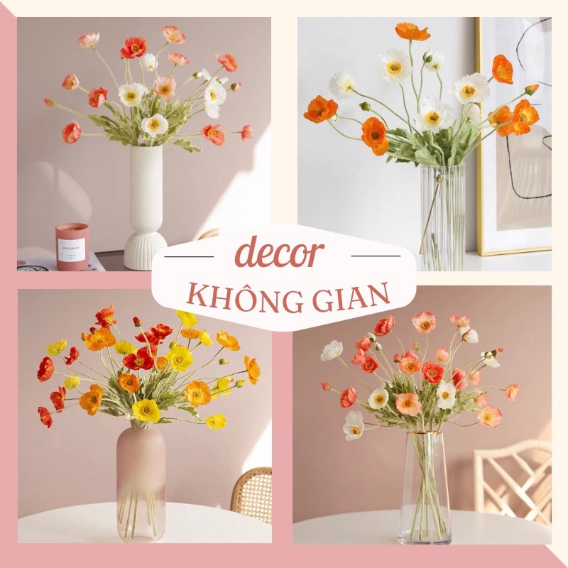 - Chùm hoa anh túc - hoa poppy giả nhân tạo cắm bình hoa cực xinh phong cách Hàn Quốc, vintage sử dụng trang trí nhà cửa, decor phòng khách, phòng làm việc, trang trí tiệc cưới, tiệc sinh nhật...- Sử dụng làm đạo cụ chụp ảnh