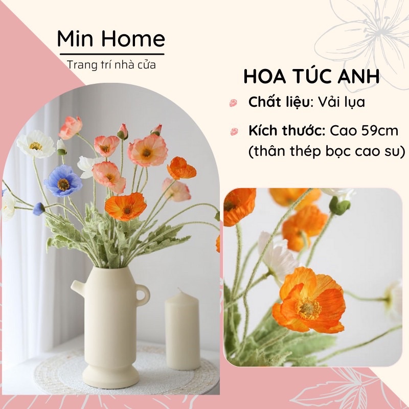 Giới thiệu Hoa lụa cao cấp trang trí nhà cửa để bàn hoa giả decor chụp ảnh chùm hoa anh túc MinHome HG1