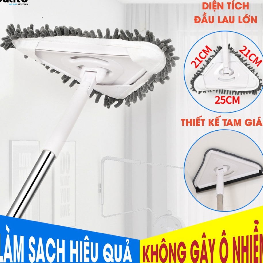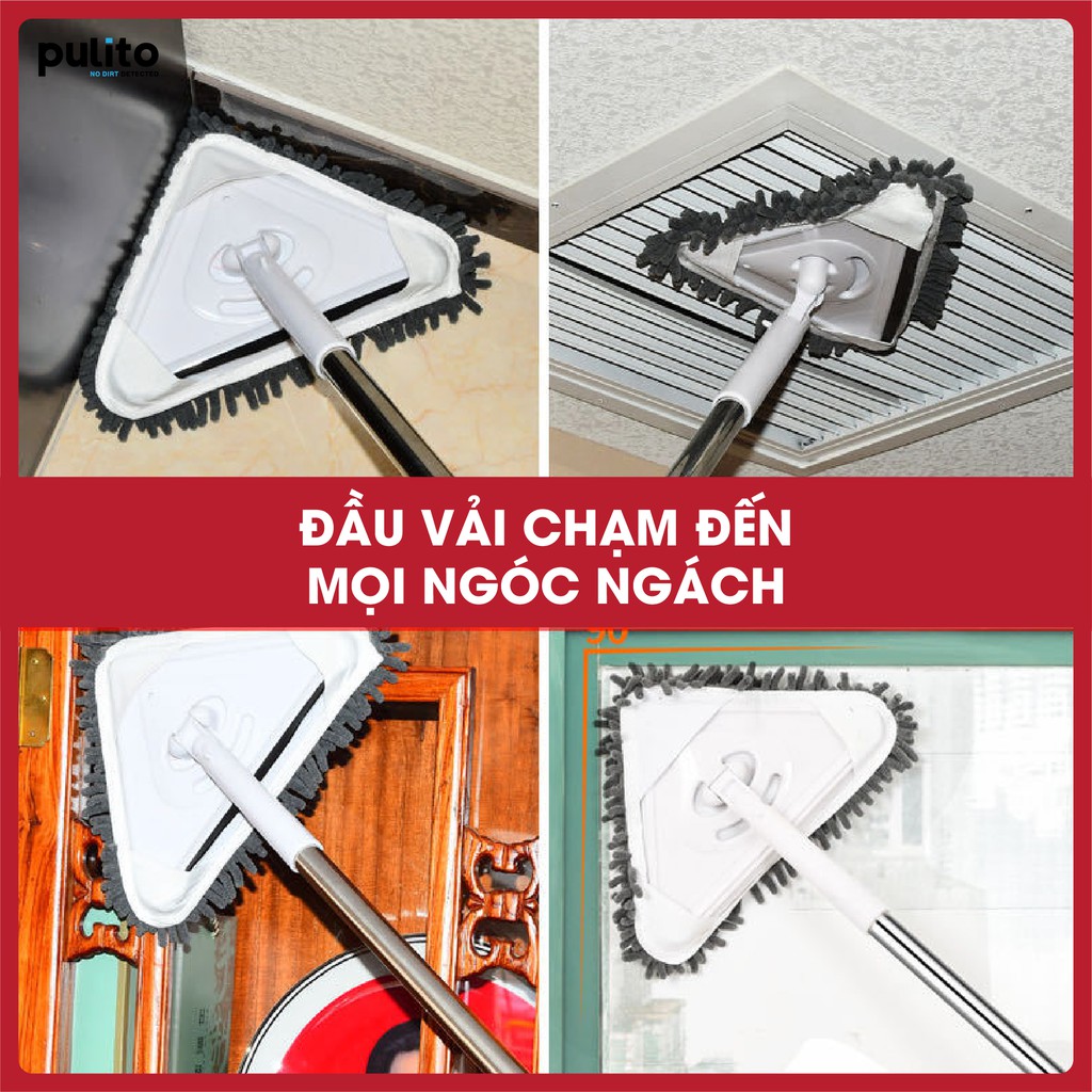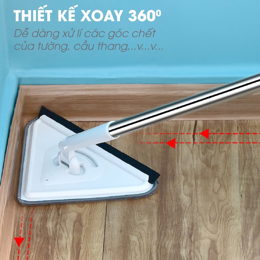 - Bông lau hình tam giác, chổi lau xoay 180 độ, phù hợp dễ dàng vào những khoảng không có góc cạnh khó tiếp cận.