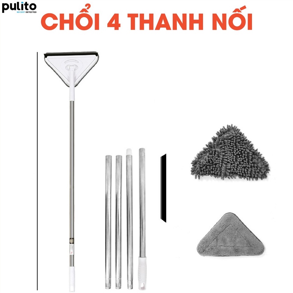 Chổi lau đa năng - Cây lau kính tam giác xoay 180 độ cỡ lớn cán dài tối đa 1m90