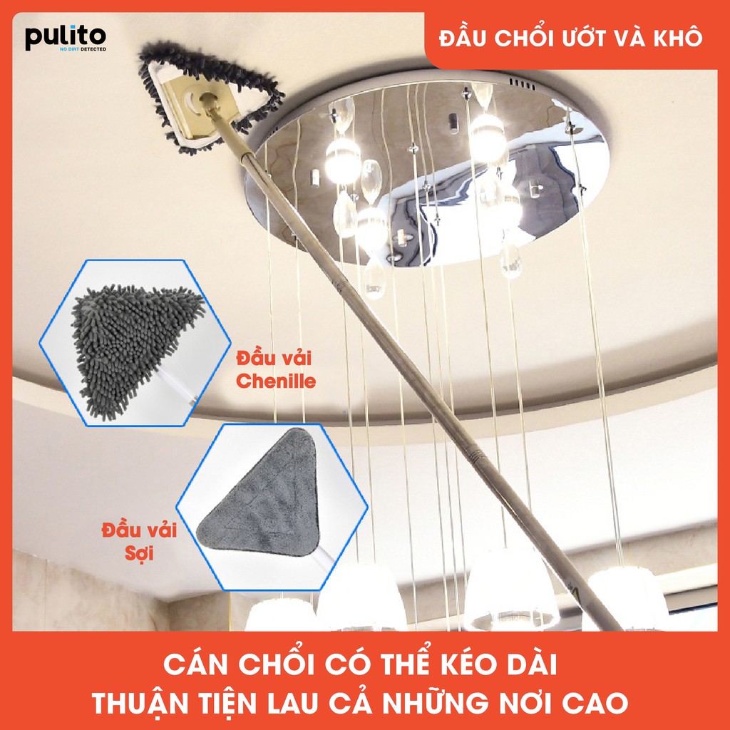 - Chổi lau có độ dài tùy chỉnh, thích hợp để lau các vị trí trên cao