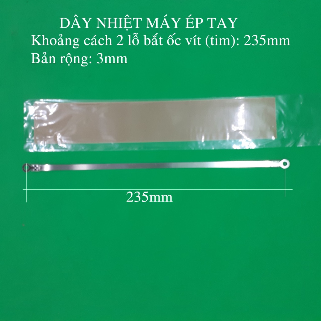 Khoảng cách tim 2 lỗ bắt ốc = 235mm, lắp vừa hầu hết các máy ép miệng túi khổ 200mm.