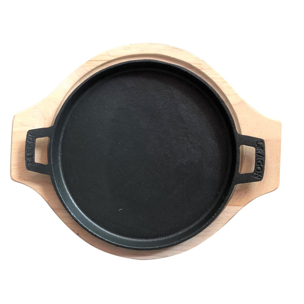 Bộ Chảo Gang Chống Dính Làm Bánh Xèo, Bánh Mì Chảo Kèm Đế Gỗ