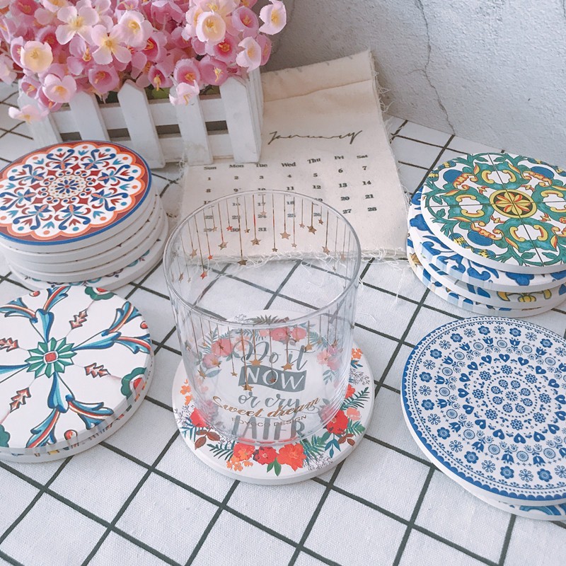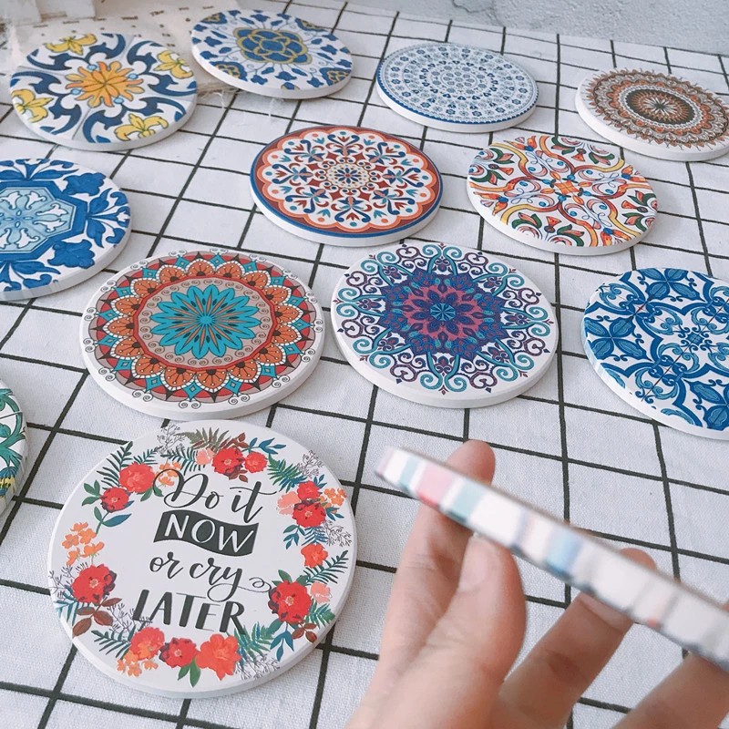 🔅🔅Đế lót ly, tấm lót cốc thấm nước bằng gốm cao cấp🔅🔅Tấm lót cốc hoạ tiết siêu xinh, thấm hút tốt. Ngoài ra, có thể lót bát đĩa, để xà bông... hoặc làm phụ kiện trang trí ngắm thôi đã thấy xinh rồi