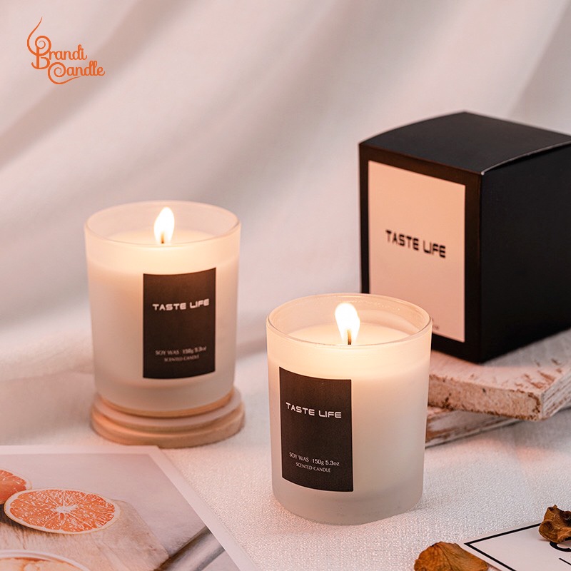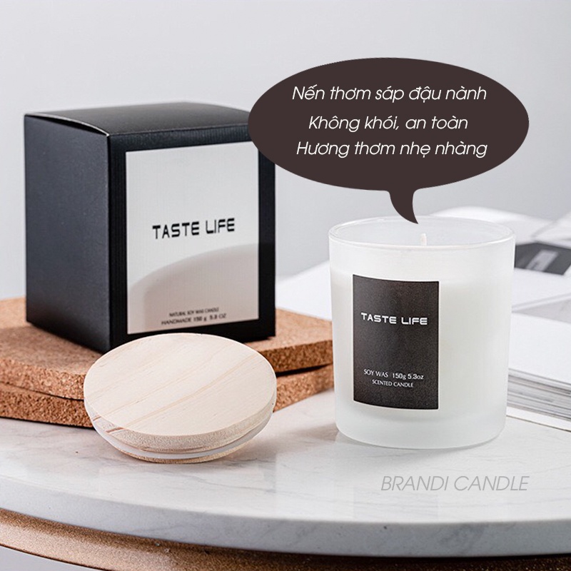 Nến taste life hũ thủy tinh nắp gỗ sáp đậu nành không khói không độc hại