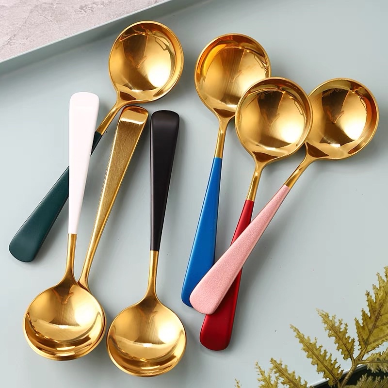 Nhà cửa & Đời sống > Bộ đồ bàn ăn > Bộ dao kéo || Combo 5 thìa ăn cơm bằng inox mạ vàng cán dài nhiều mầuCòn hàng