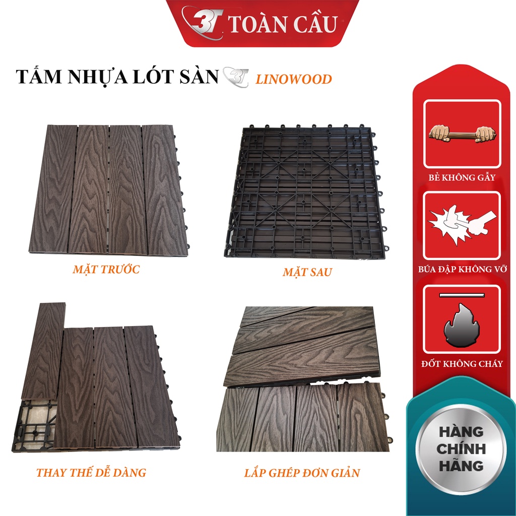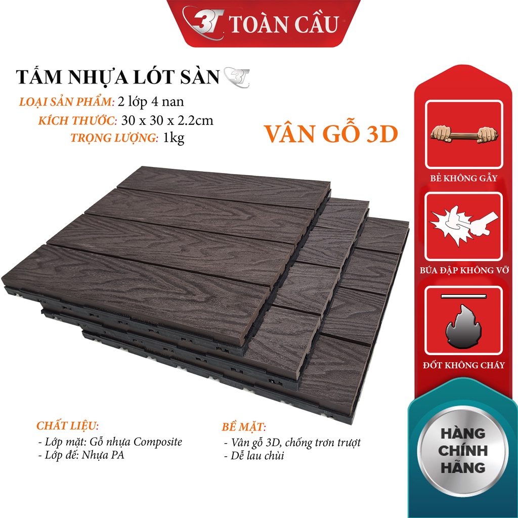 Nhà cửa & Đời sống > Dụng cụ & Thiết bị tiện ích > Mái & sàn || Tấm Lót Sàn Ban Công 3T vân gỗ 3D - Loại Sản Phẩm 2 Lớp 4 Nan Nhựa CompositeCòn hàng