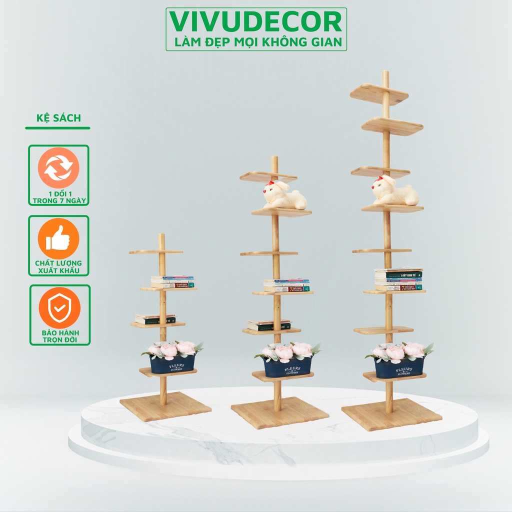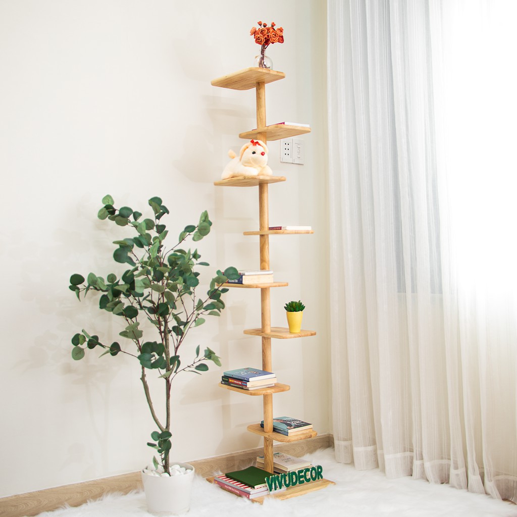 Kệ gỗ Vivudecor decor trang trí phòng ngủ nhà giá sách tháo lắp nhỏ gọn 8 tầng