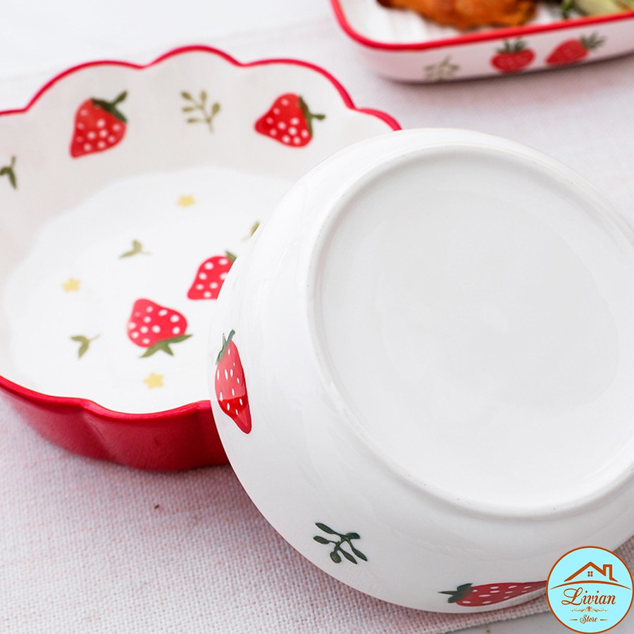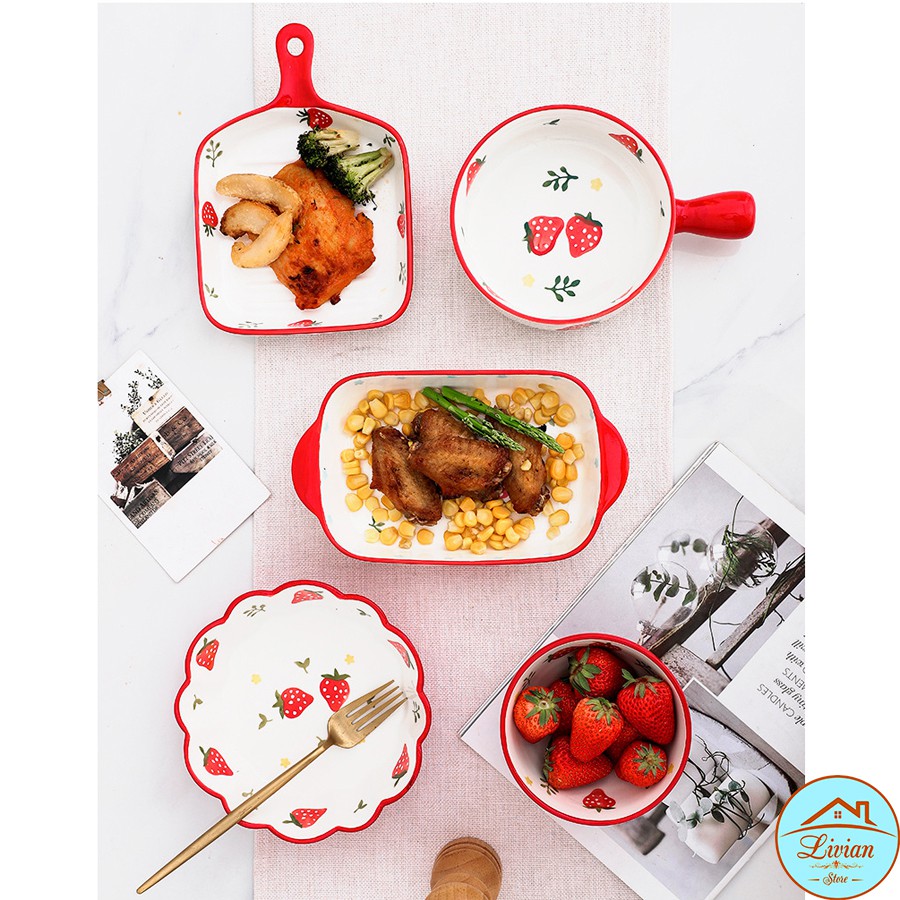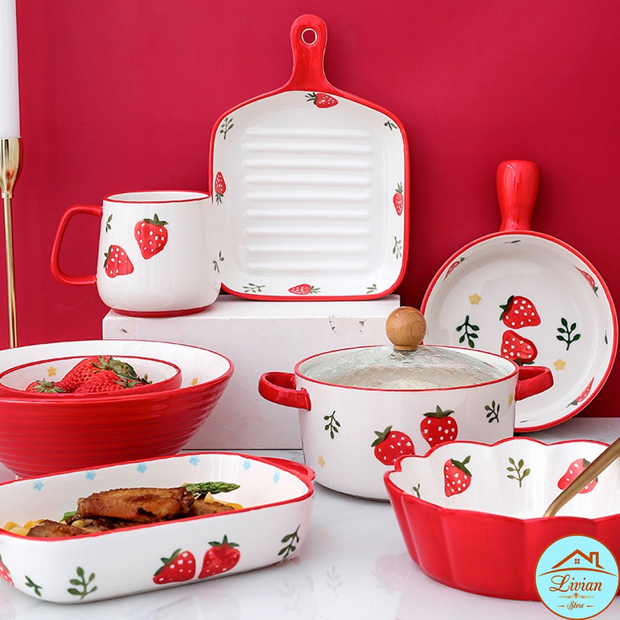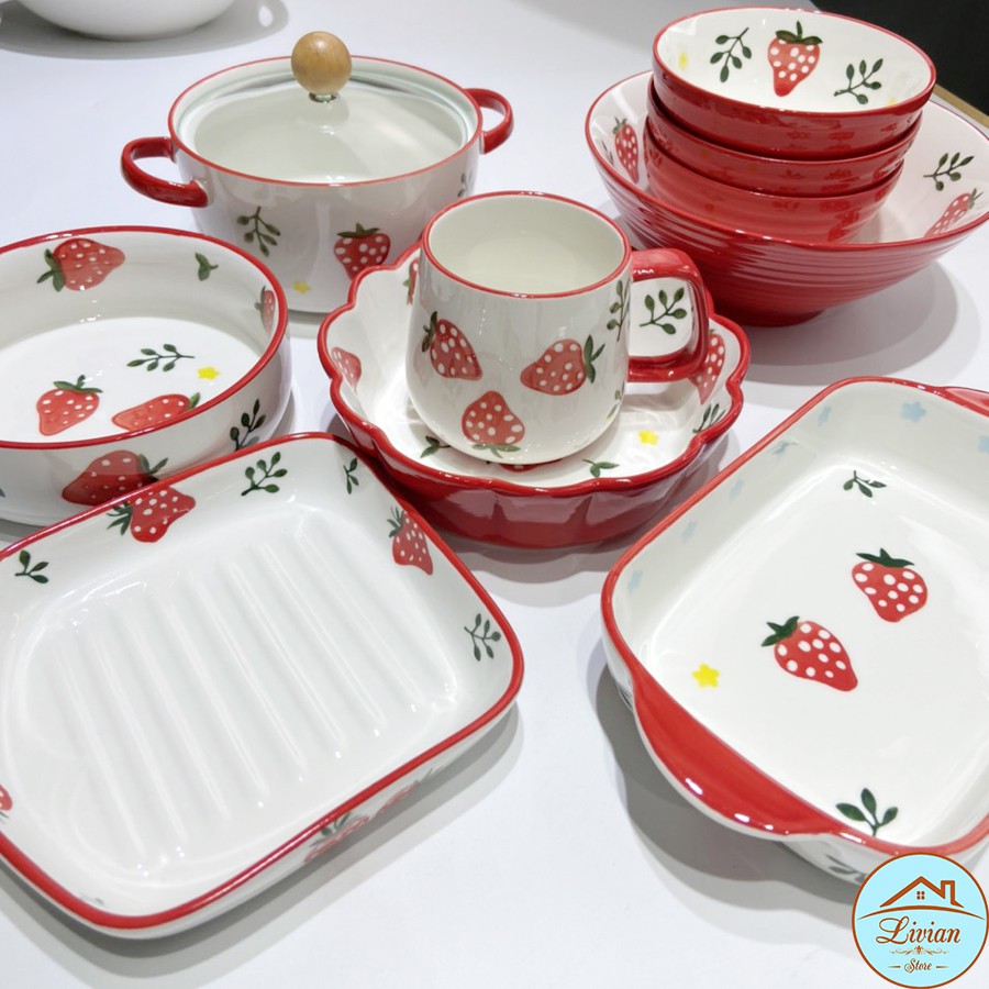 Nhà cửa & Đời sống > Bộ đồ bàn ăn > Dĩa || Bát đĩa sứ họa tiết dâu tây viền đỏ - 8 món cực xinhCòn hàng