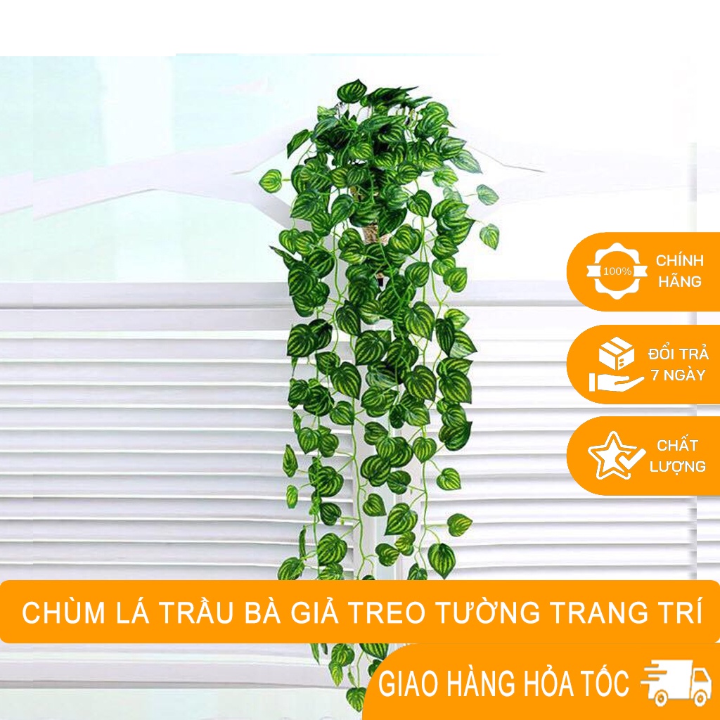 Lá Giả - Chùm lá trầu bà giả treo tường trang trí nhà cửaNếu bạn vẫn đang tìm kiếm loại cây cỏ trang trí cho không gian xanh mát, gần gũi thiên nhiên thì trầu bà là 1 lựa chọn hoàn hảo ạ.