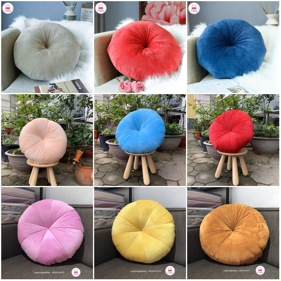Đệm Ngồi Bệt Hình Tròn Kiểu Dáng Sang Trong (Bông Trắng Cực Êm)Sản phẩm đệm gối tựa lưng trang trí với thiết kế dạng quả bí, màu sắc đa dạng phù hợp nhiều phong cách vừa trẻ trung cá tính mà vẫn hiện đại, đơn giản, thích hợp trang trí phòng khách, phòng ngủ, ghế sofa,... Chất liệu vỏ gối tựa lưng bằng nhung cao cấp, và lõi bông PP chống xẹp, giúp đệm gối tựa lưng trang trí luôn giữ được phom dáng và đặc biệt vẫn có sự mềm mại, an toàn cho da người sử dụng.