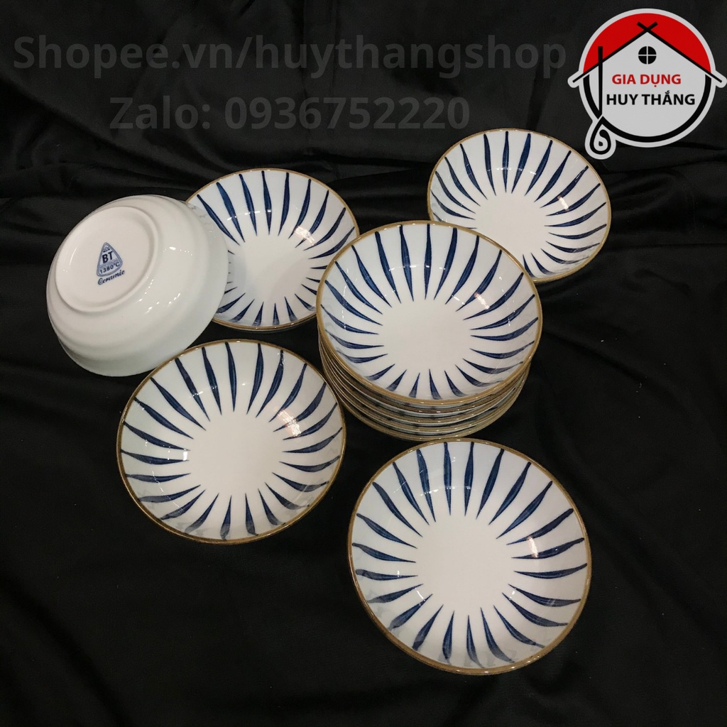 Bát Chấm Sứ, Đĩa Đựng Gia Vị Sứ Hàng Cao Cấp, Họa Tiết Kẻ Trúc
