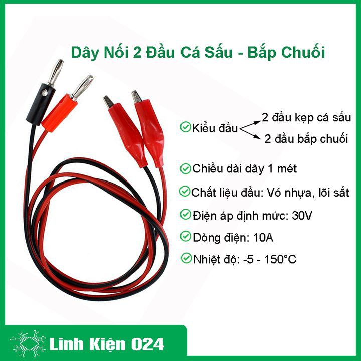 Thông số kỹ thuật:- Dây nối một đầu kẹp cá sấu, một đầu jack bắp chuối đực.