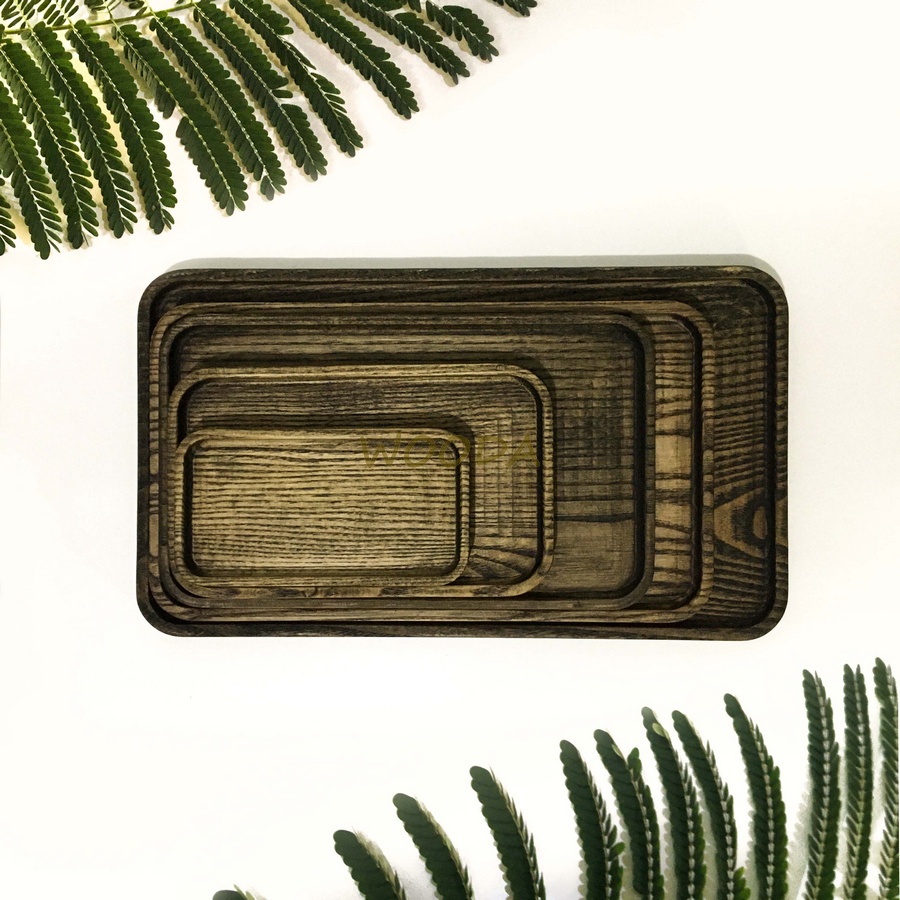 Bộ khay gỗ chữ nhật màu tối - Khay gỗ phục vụ, đựng đồ ăn minimalism
