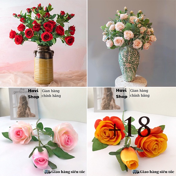 Nhà cửa & Đời sống > Trang trí nhà cửa > Hoa trang trí || Hoa giả - Hoa Hồng nụ cao Havi 2 bông 1 nụ giống thật trang trí bền, đẹpCòn hàng